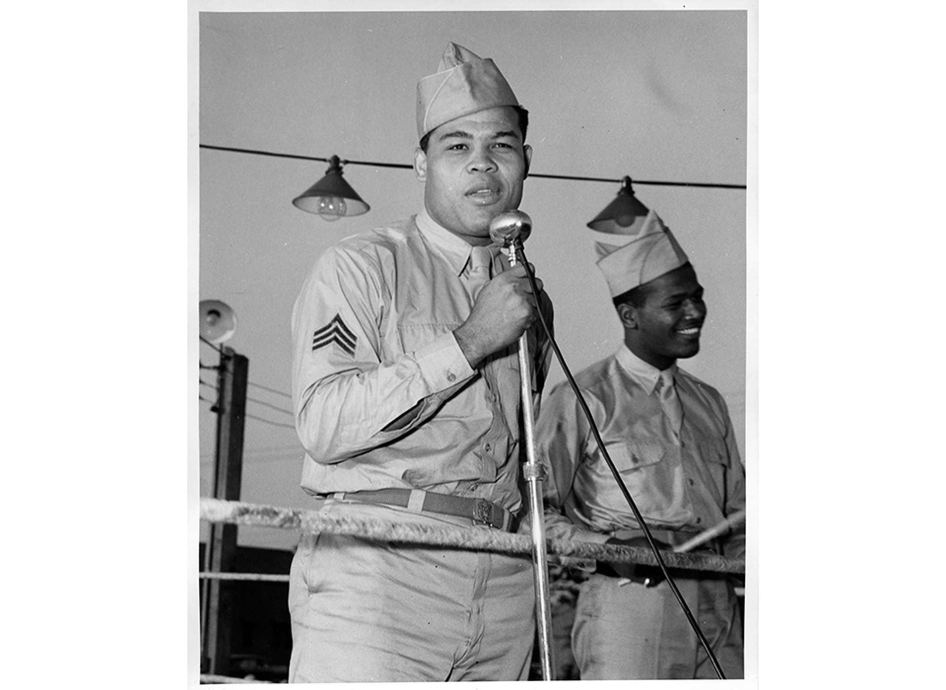 Louis enlisted in the Army in 1942, rising to the rank of sergeant. Kept stateside, he fought in hundreds of exhibition matches to entertain the troops and raise money for the military.